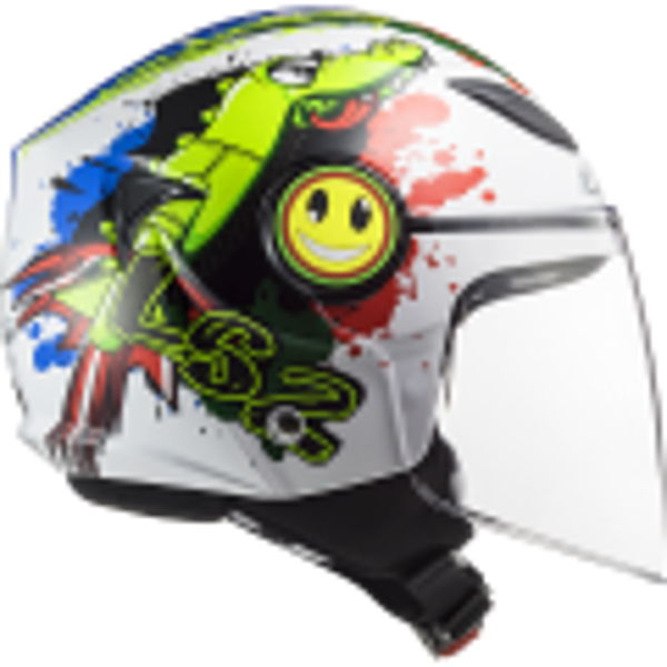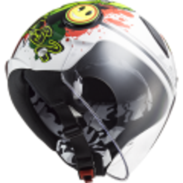 Laag gewicht en hoge veiligheid gaan samen met een speels en gedurfd ontwerp in de LS2 Grappige helm Helm spreekt vooral kinderen en jonge rijders aan, die plezier, stijl, comfort en veiligheid brengen. Sterke en duurzame HPTT-schaal met uitstekende energieabsorptie is uitgerust met een kantelbaar vizier voor een comfortabele rit. Comfortabel volledig uitneembaar en wasbaar hypoallergeen interieur zorgt voor maximaal comfort op warme en koude dagen. Bevestiging via micrometrische snelsluiting is zeer eenvoudig en betrouwbaar.