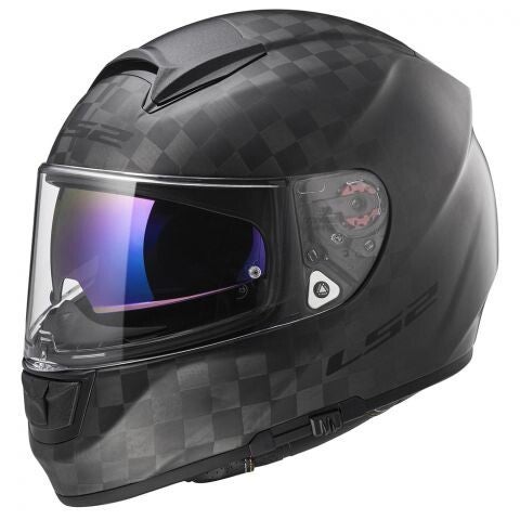 Technisch geavanceerde Carbon fiber sport-touring full-face Vector C Carbon motorhelm biedt technologieën en functies die wedijveren met de meest geavanceerde premium helmen ter wereld. Duurzame en energieabsorberende schaal van ongelooflijk lichtgewicht breedgeweven koolstofvezel met hoogwaardige afwerking biedt uitzonderlijke bescherming tegen schokken. Vector C Carbon-helm wordt geleverd met een fantastisch uitziend Iridiumblauw geïntegreerd intern zonnevizier en een helder kras- en UV-bestendig gezichtsscherm. Dynamische doorstroomventilatie met volledig instelbare inlaatpoorten en geventileerde EPS, ademdeflector en kingordijn houden de rijder de hele dag koel en comfortabel. Emergency Release System met snel verwijderbare wangkussens zorgen ervoor dat de helm gemakkelijk kan worden verwijderd in geval van een ongeluk. Volledig verwijderbare en wasbare hypoallergene binnenkant voor een comfortabele pasvorm. FF397 Vector C Carbon-helm is voorbereid voor installatie van het LS2 Linkin Ride Pal Bluetooth-systeem. Gratis Pinlock 70 Max Vision vizier inbegrepen. Ongelooflijk licht van gewicht, slechts 1300 g.